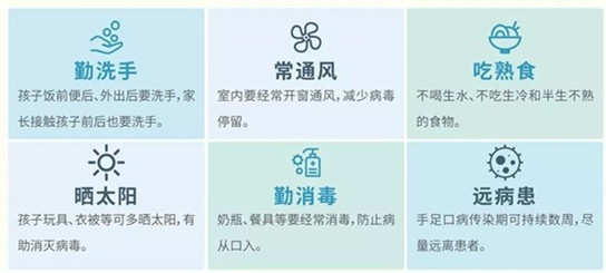 四、预防手足口、疱疹性咽颊炎的措施: