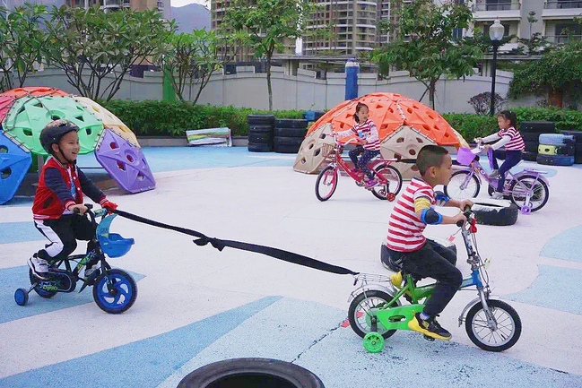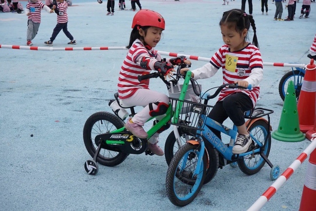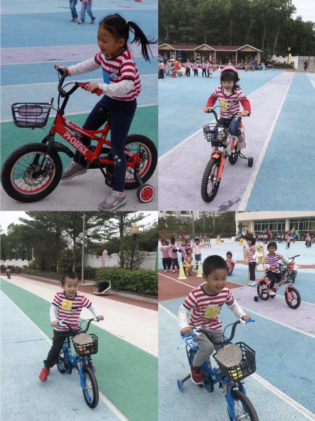 接力赛、拉力赛、障碍赛、速度赛……精彩的项目一个接一个。参赛的孩子们鼓足力气,小腿飞快地蹬着脚踏板,一个个像一阵风似的冲过终点。在同伴和弟弟妹妹的鼓励加油声中,孩子们勇敢往前冲,快乐的体验与游戏着。童心依旧,积极参与,每个孩子在游戏中都奋力追赶,配合默契,时时爆发出快乐的笑声,整个操场瞬间变成了欢乐的海洋。