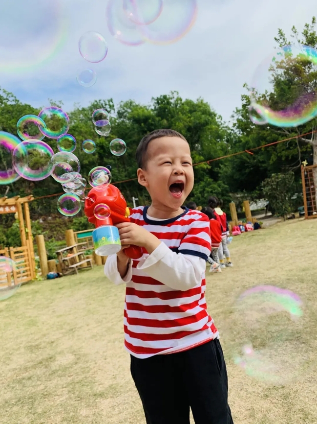 有了美食,当然少不了我们的游戏:放风筝+泡泡大咖+玩转风车;这些都是属于孩子们的天地。适合孩子年龄的游戏和玩具有千百种,应该怎么选择?怎么玩?玩泡泡梦幻色彩,让孩子连呼“哇塞”,从而激发幼儿对游戏的多元价值的体现,赏识幼儿的创意和潜能,真正做到“会”玩“慧”玩,越玩越“慧”。