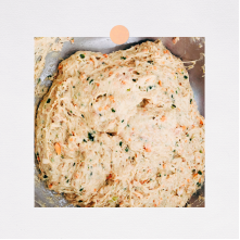 一开始,需要将所有的食材捣碎,打上鸡蛋,在准备好的面粉上一起揉捏。在经过每一位大力士宝贝的齐心协力下揉成一个大肉团。孩子们有模有样地,像一个真厨师一样能干!伴着预热好的汤锅,看着他们专心致志的样子,仿佛他们化身成为一个个“小厨神”,然后不急不慢地开始制作着专属自己的蔬菜肉丸。