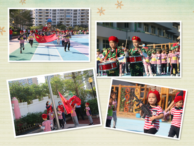 伴随着激昂的运动员进行曲,小小运动员们整齐划一地迈着步伐出场了,令人震撼的是还有女兵方阵、海军方阵、陆军方阵、空军方阵呢!