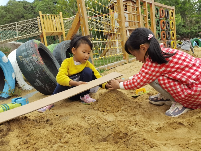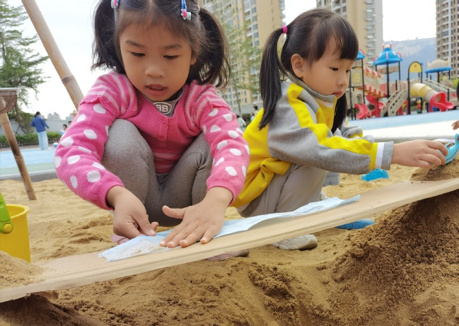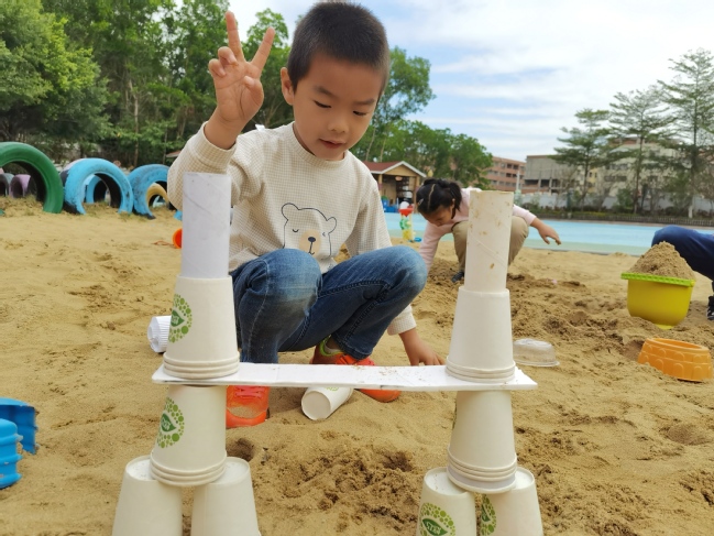 一沙一世界,一桥一风景。各种各样的桥立在沙上,与我们的宝贝一起,变成“嘉”园一道独特的风景。