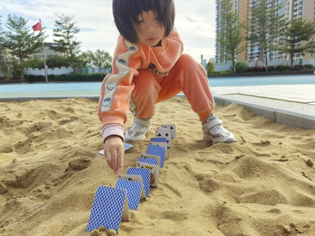 “我喜欢长长的、直直的桥,我找到扑克牌,可以用它做支架。”