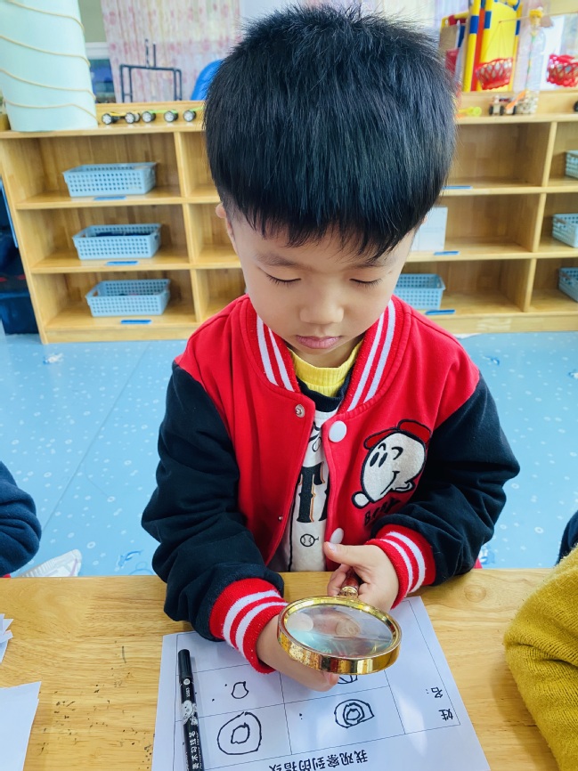 信之也拿起放大镜观察着:“那是不是我们皮肤上面的花纹啊”。