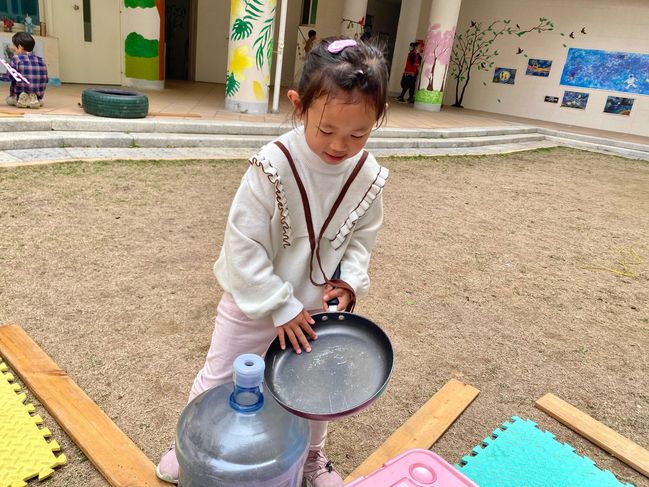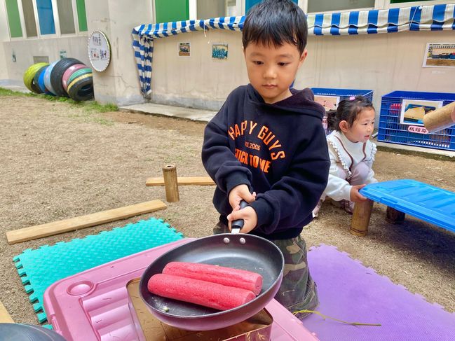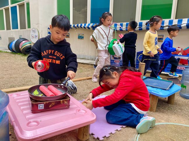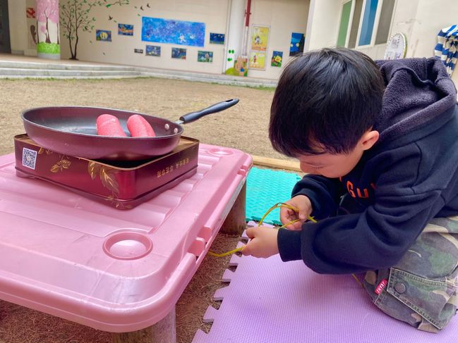 一次小小的“炒香肠”活动,引发了一系列可爱的对话,孩子们的世界就是这么纯真。当幼儿在游戏的过程中,作为老师,我们应该走进他们的游戏里,并持续的观察他们的行为,只有自由、自主、愉悦、创造的真游戏,才能给幼儿带来积极的情绪体验和丰富的经验。而作为老师,只有真正蹲下身子,才能看到孩子活动中的精彩时刻。以“儿童在前,教师在后”为基点,转变儿童观、教育观,倾听儿童的想法,鼓励儿童的表达与交流。给予孩子自主选择权,让孩子们在富有童趣的环境中,尽情地游戏。