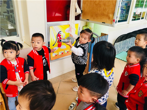 结合托班幼儿的年龄特点和学习特点,采用“游戏”的方式与孩子们开展了多元互动活动:“火警电话是多少?”、“着火了怎么办?”、“小朋友能不能随便玩火?”通过这些提问,老师结合图片讲解、故事表演、体育游戏、实地参观等方式让小朋友们在轻松愉快的气氛中掌握了消防安全知识,使其认识到消防安全的重要性并引起小朋友对消防的关注。