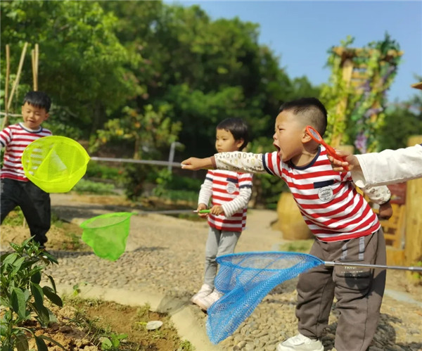 好饿的毛毛虫吃了好多好吃的食物,终于它变成了美丽的花蝴蝶!小“嘉”人用镂空蝴蝶卡纸在“嘉”园里寻找“花蝴蝶”,接着又拿起捕虫网,要去寻找真正的花蝴蝶了。