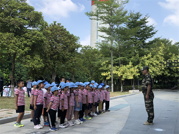 “稍息!立正!”伴随着教官一声又一声响亮有力的口号声,小小兵的爱国教育活动也拉开了序幕。OD妈妈为本次活动特别邀请了一位很厉害的退伍军人,为孩子们开展爱国教育,特邀嘉宾退役军人曾思展在和孩子们的互动中,教孩子们站军姿!学敬礼!瞧,大2班的孩子们,瞧!孩子们昂扬的精神面貌、整齐的步伐和队列,他们严肃认真抬头挺胸,小手贴紧裤缝,两脚并拢,努力地按照教官的要求去做,俨然就是神气的小军人。