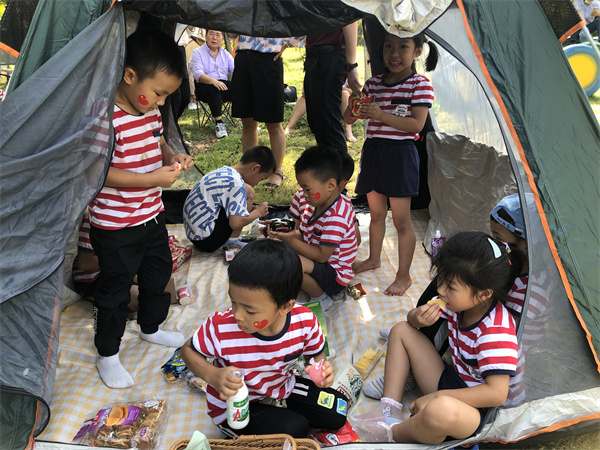 游戏过后,欢乐野餐的时间到了,孩子们和爸爸妈妈一起进行了愉悦的野餐环节,你说我笑,好不热闹。