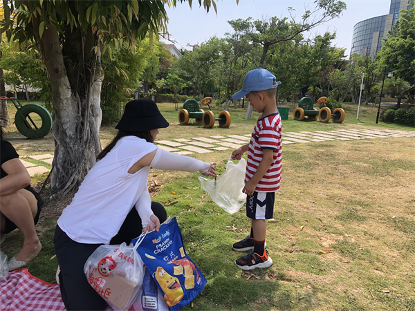 太阳公公越爬越高,有趣的亲子活动也就快结束啦,可爱的大2班小小兵们,还在野餐结束后主动整理物品,收拾垃圾,真是新时代的文明“小小兵”,为你们点赞!