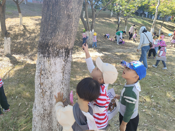 快乐丰富的秋游活动,让孩子们回归大自然,不仅使孩子们在幼儿园的生活更愉快,更充实,更丰富,而且扩展了幼儿的视野,丰富了孩子们的社会经验。生活即教育,带领幼儿走进自然环境中,让教育回归生活,回归自然,回归本真。带着这份愉悦的心情我们返园了。