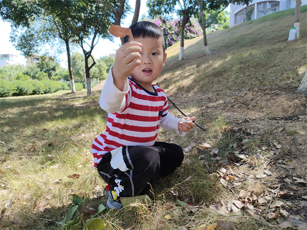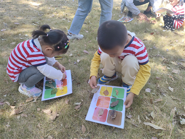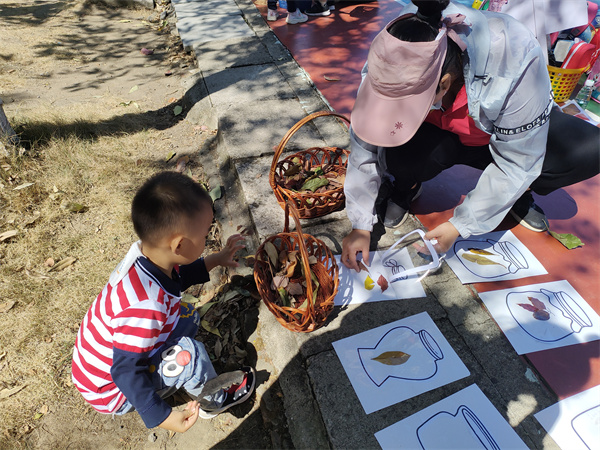 我们请来了厦门大学嘉庚学院的姐姐们为我们讲解秋天的秘密。一花一草,一叶一木,都是风景。我们用放大镜探索秋天的奥秘。我们收集不同颜色的落叶,而这一片片叶子又会给我们带来什么样美感和惊喜呢!这世上没有两片相同的树叶,每一片都有自己的绿意,每一片都有相应的故事。就让秋最后的绚丽留在我们的卡纸上吧!