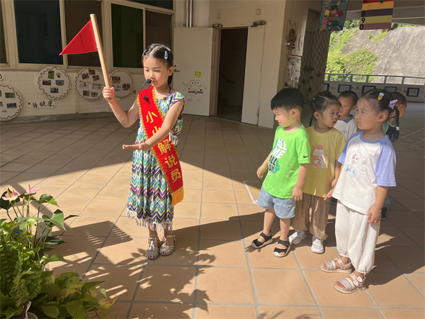 听。小小解说员用甜美的声音,流利标准的普通话向弟弟妹妹介绍幼儿园的每一个角落,让他们熟悉幼儿园,爱上幼儿园。