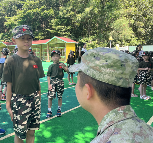 在军训中,大班的小朋友用最标准的军姿和最标准的普通话,化身神气小小兵,自信大方地向教官介绍自己,赢得教官叔叔阵阵掌声。