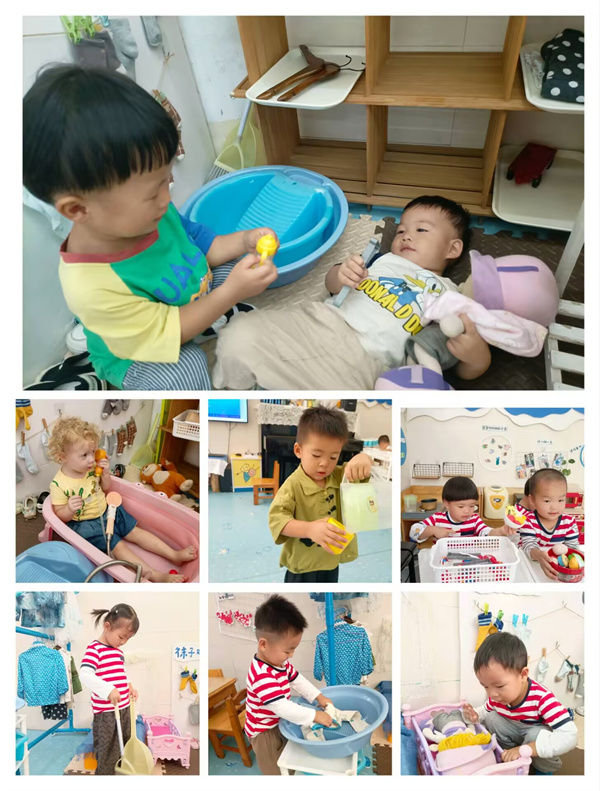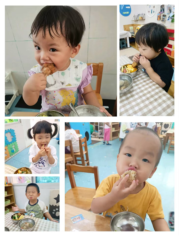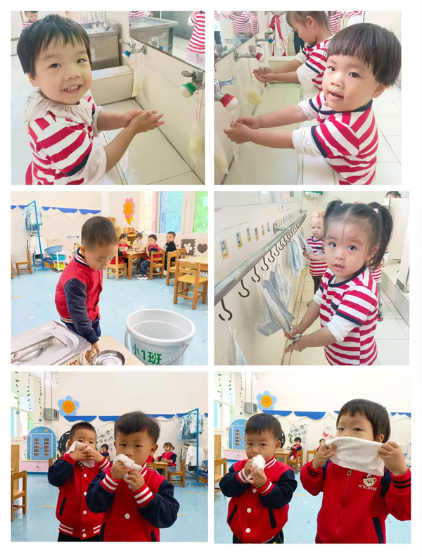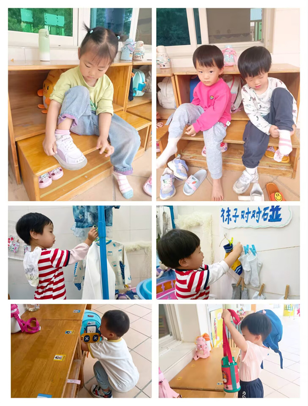 在老师的悉心培育下,小萌娃们的自理能力呈现出令人欣喜的提高态势。吃饭需要老师不断催促帮忙的萌娃们,如今已能自觉坐在餐桌前,较熟练地拿起小勺子,一口一口地将饭菜送进嘴里,桌面也保持得相对整洁;睡觉从哇哇大哭到小声抽泣,直到现在安然入睡,睡得又香又甜;还有洗手、挂毛巾、擦嘴、收拾餐具、穿袜子、放书包、摆水壶、搬玩具等,这么多事情也都能完成得很好。看,孩子们都变身成自理小能手,多能干啊!