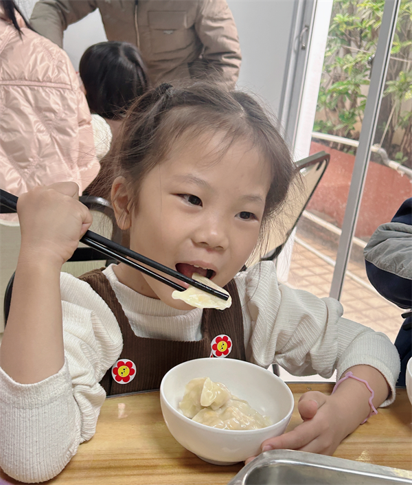 冬至,一个充满温情的节气,素有“冬至大如年,人间小团圆”的说法。借冬至活动契机,2024年12月21日大2班大小“嘉”人在幼儿园“24节气主题庙会”到来之际,在厦门大学嘉庚学院南强食堂开展了一场主题为“饺香四溢·温暖满溢”冬至活动。自“嘉”的食堂,自“嘉”的手艺,用一份最传统的饺子传递“嘉”的暖意。