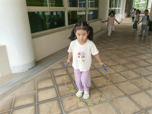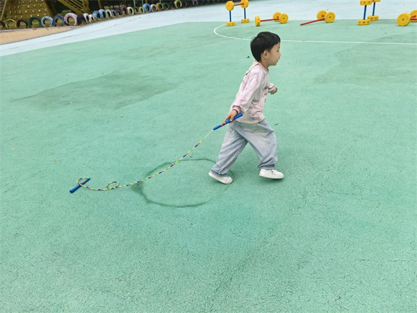 在户外活动时间,老师为孩子们准备了长短不一的跳绳,鼓励他们自由尝试。有的孩子兴奋地甩动绳子,却总是被绊倒;有的孩子小心翼翼地跳跃,却跳不过去;还有的孩子干脆把跳绳当成了“舞龙”道具……现场笑声不断,但也充满了挫败感。