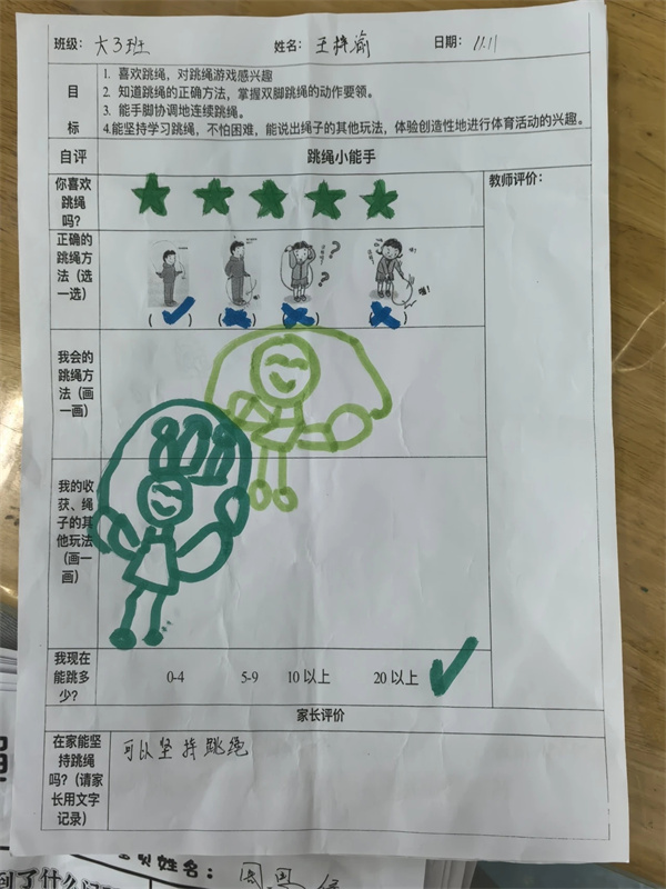 当基本技能掌握后,幼儿迎来了更大的挑战——“跳绳小达人”挑战赛!