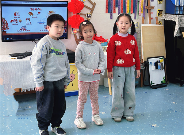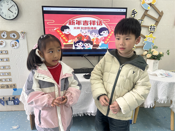 教室里响起了此起彼伏的吉祥话, “祝老师新年快乐!”“愿小伙伴健康成长!”孩子们大声送出祝福,也藏下了自己的新年小愿望。