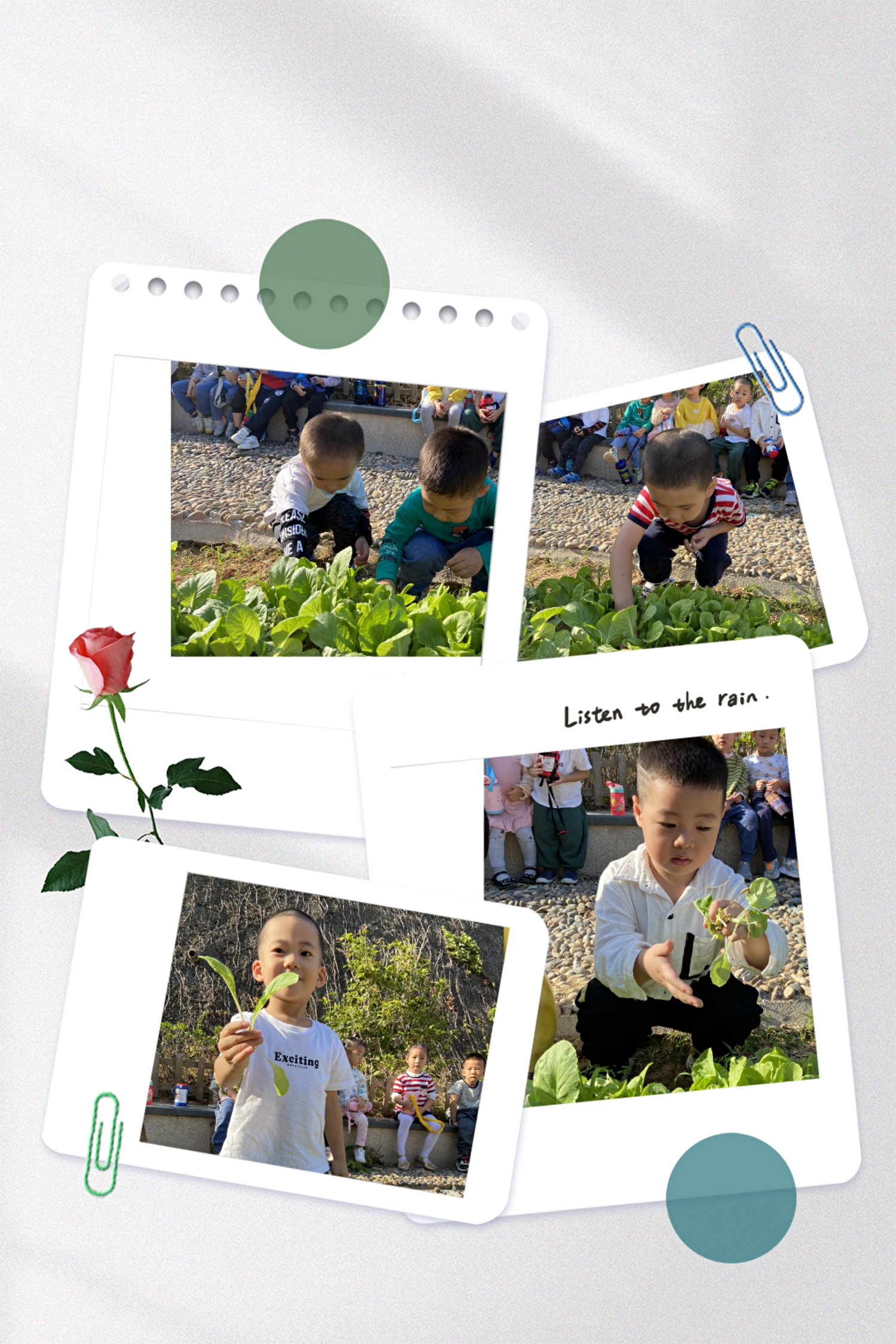 瞧!孩子们在老师的带领和引导下,观察蔬菜宝宝的生长情况,以及它们的颜色、形状等等。在小小的农场里孩子们探头张望着,询问着,讨论着,尽情地享受着大自然的杰作。