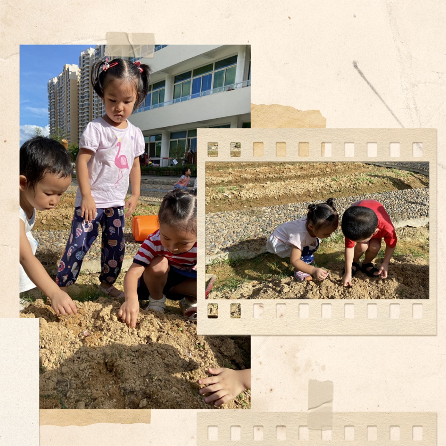 一直以来,我们秉承陈鹤琴“活教育”思想,立足儿童“真生活、真情境、真实践、真体验”的教育理念,我们的活动来源于生活,又回归生活,在实践中发现、表达从而积累经验。因此我们为孩子们创设了属于他们的“小蜜蜂农场”,是一块“责任”小天地,更是园内一个微型的自然界。